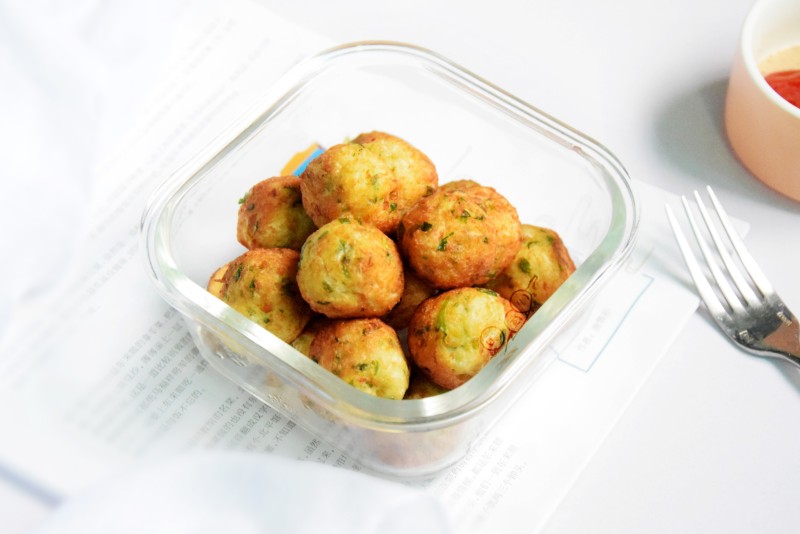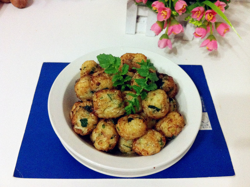 7:油温加热6成热时关小火用手挤出球状下到油锅里不要翻动全部定型后捞出