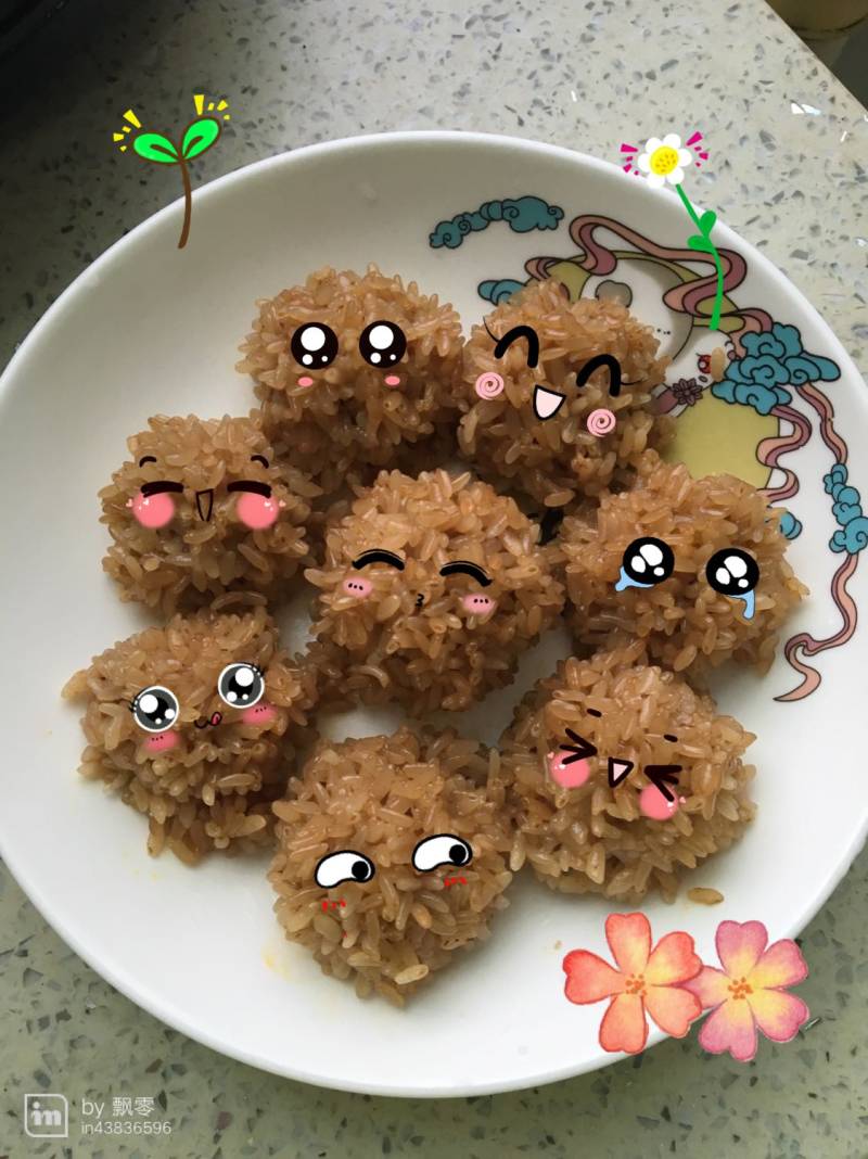 1:这个是处理好的糯米丸,之前没想到要发布菜谱,就没有拍食材部分。我就文字讲解下:猪肉香菇部分(我有绞肉机,香菇不是那种晒很干的干香菇,是大的香菇,绞成香菇肉末馅,酱油拌匀)。糯米部分(浸泡一上午,然后放老抽跟美味鲜酱油浸泡一小时)。蛋黄部分(切半,我买的是现成的咸蛋黄)。然后蛋黄用肉馅包圆,外面裹一层糯米,上锅