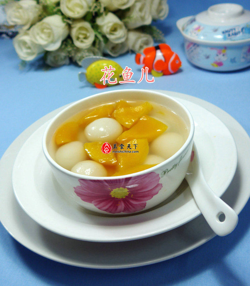 9:然后,下入糯米丸子煮开,煮至浮起。