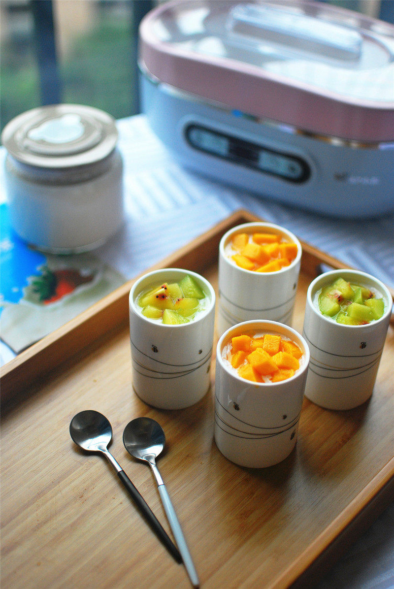 1.酸奶是之前做的……具体做法请参照自制酸奶哦。2.做酸奶的时候放了糖的,这里就没放哦……3.食材按自己喜好随便放。但是,最好不要放香蕉和橘子,据说食物相克,小心为上。4.冷藏之后风味更佳哟……