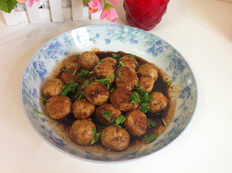 13:搅拌均匀让丸子都裹上汤汁。收汁装盘就可以了