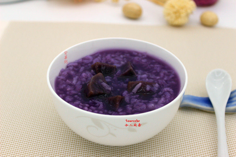 比较简单,煮紫薯粥水最好不要太多。还有有的亲们问为什么紫薯煮出来是变色了或者呈现蓝色了。那是因为紫薯的品种不同。