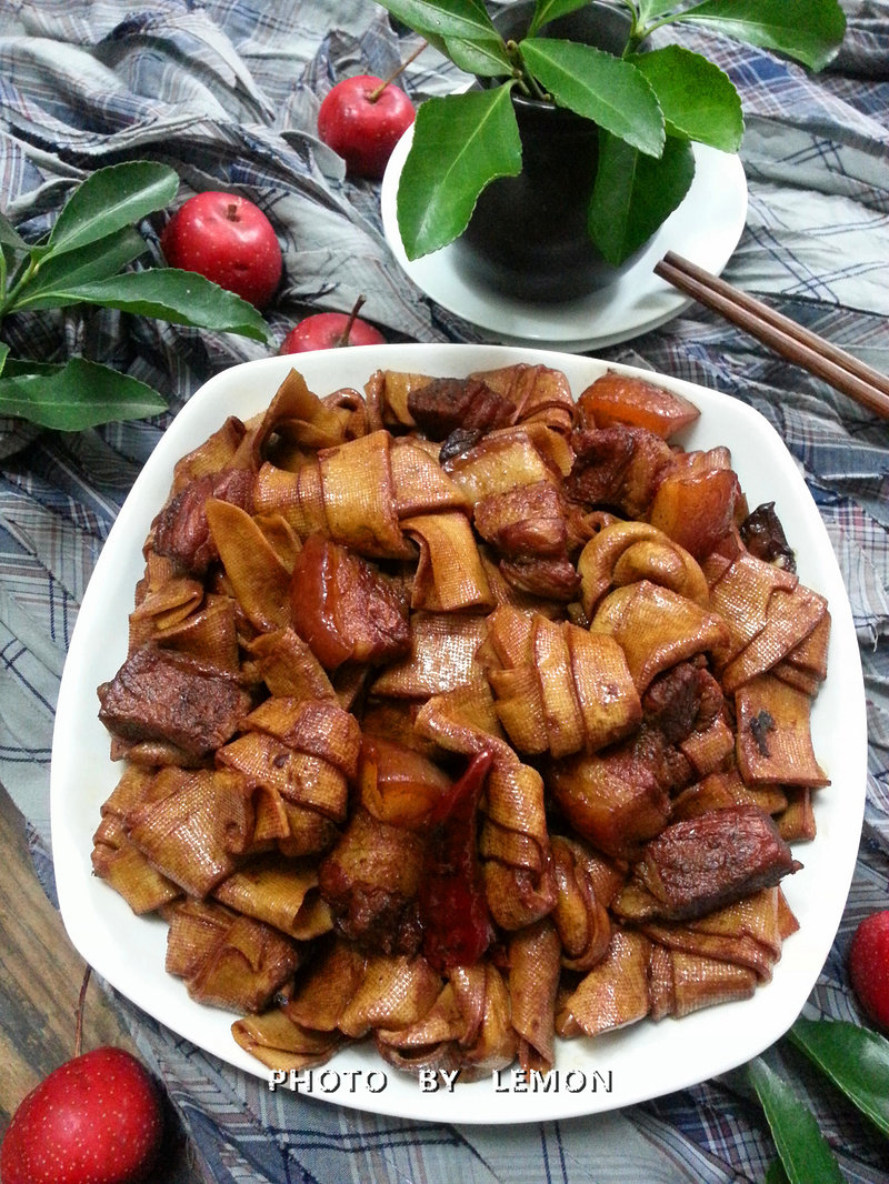 卖萌的柠檬7:千张结要放在油水中才有嫩嫩的口感;如果没有油水;干干的不好吃。卖萌的柠檬7:如果孕妇要吃这道菜;为了健康就不要加香料了,一样美味。这些热性佐料容易消耗肠道水。分;造成便秘增加孕妇腹压,压迫胎儿造成早产和胎动不安。卖萌的柠檬7:五花肉要做出香味;肥的和瘦的部分都要将水分完全烧出。卖萌的柠檬7:千张结在烧的过程中,要分两次加老抽,第一次上色;第二次入味。卖萌的柠檬7:烧五花肉的诀窍,记得要放冰糖。可以给五花肉上色,亮闪闪的。卖萌的柠檬7:放老抽要看食材的多少决定,食材不多千万不要像我这样放老抽,那样颜色会变成黑色的。卖萌的柠檬7:不要按照我做的量放作料,要因地制宜。我的食材量太多。用减半的量,按一半的作料放置。这样就比较准确了。卖萌的柠檬7:哇,我老妈的经验太丰富了,难怪她说“吃的盐比我吃的饭还多。”