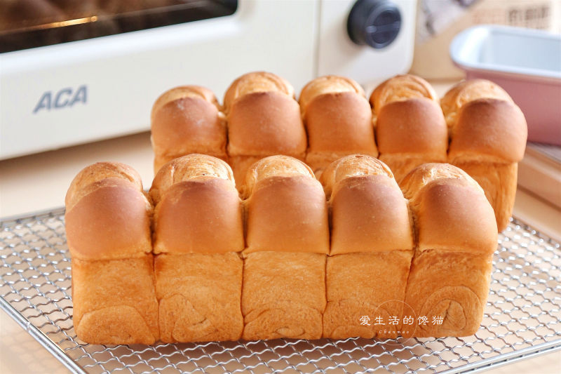 12:面包烤好后,倒在烤架上放凉就能开始,柔软拉丝,还有浓郁的奶茶香气,真的太好吃了!