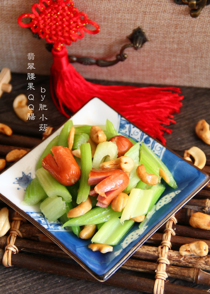 9:大火翻炒,在西芹快熟的时候加入腰果