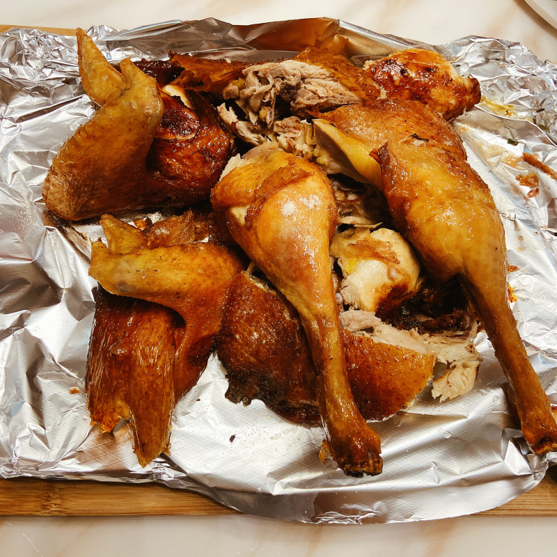 1:两只鸡腿,用剪刀分离骨肉,然后翻开鸡腿肉。