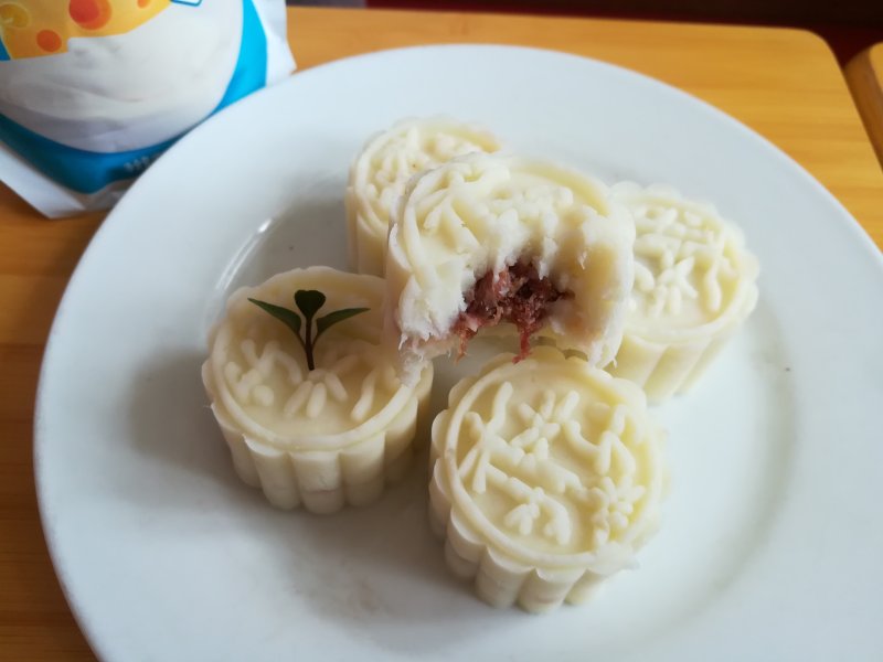 9:再取一块山药泥盖住玫瑰酱。