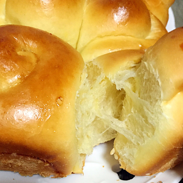 全脂牛奶210g;蜂蜜35g;鸡蛋55g;白砂糖30g;酵母5g;高筋粉380g;糯米粉40g;盐3g;黄油40g;