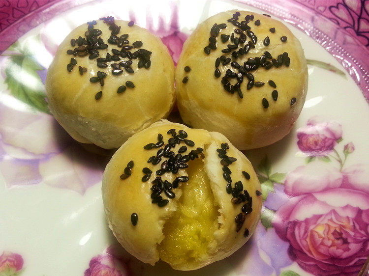 5:在表面刷上一层蛋黄液,再撒点黑芝麻。
