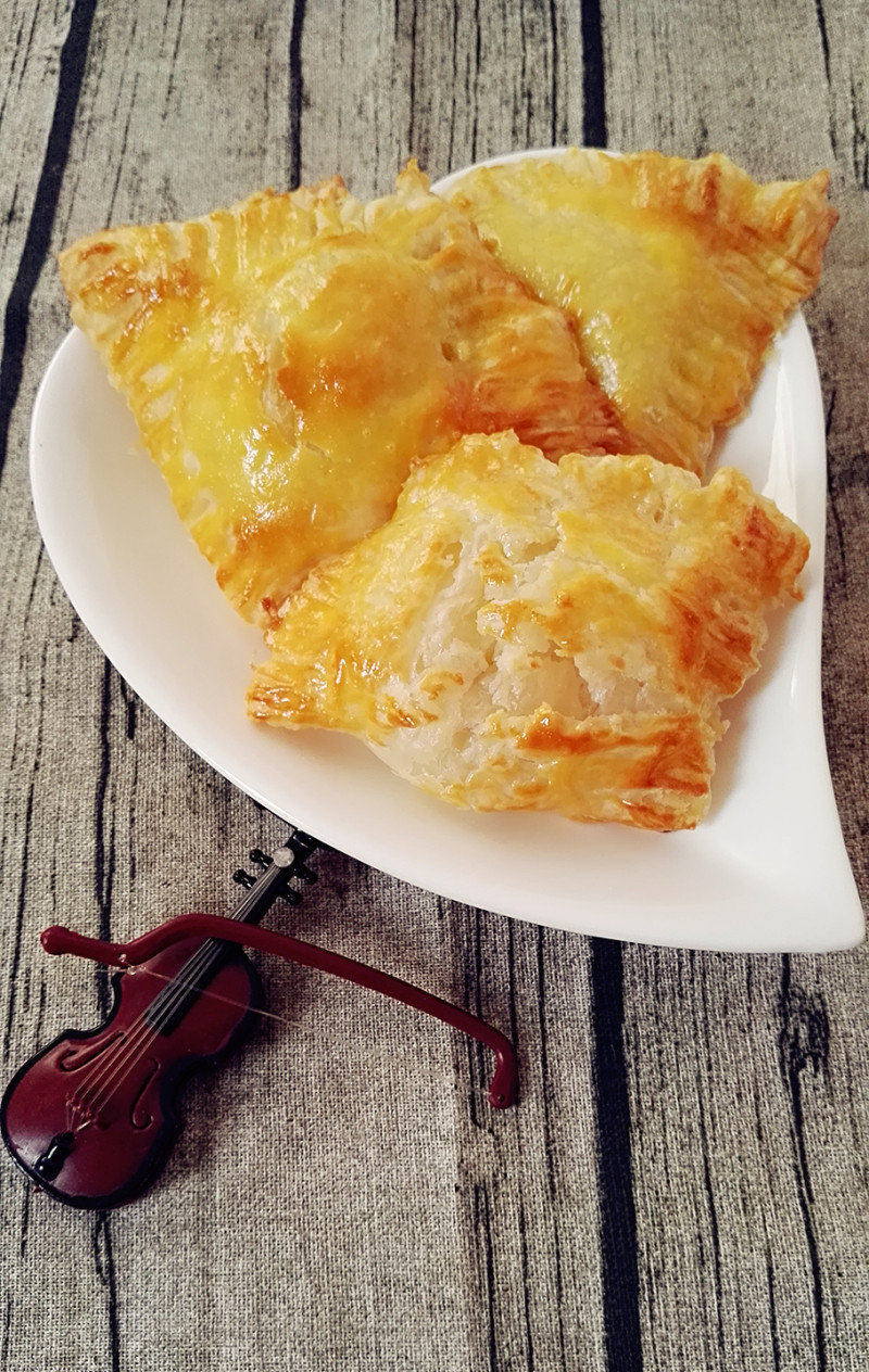 7:像包饺子一样包上。形状随意,不要咩太紧。以免影响后面起酥!