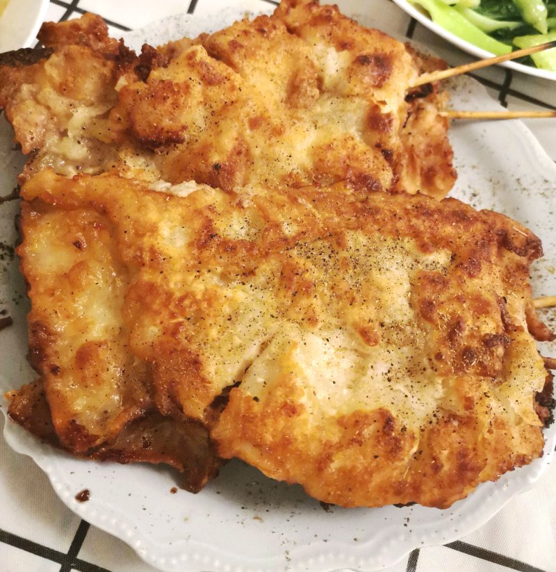 6:摆盘时可依据个人喜好在表面撒些孜然粉、辣椒粉,也可切块食用。