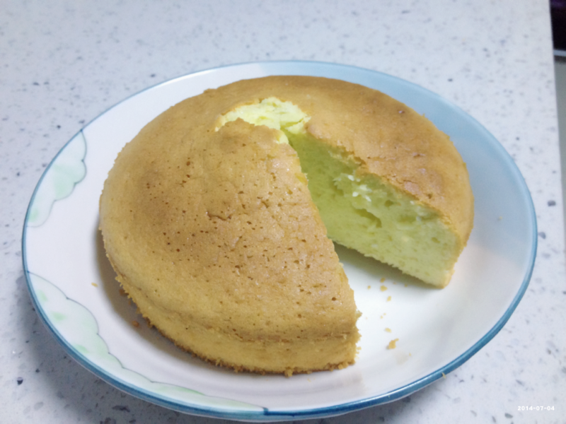 6:烤好的蛋糕倒扣放凉后脱模,我用的活底,脱模方便