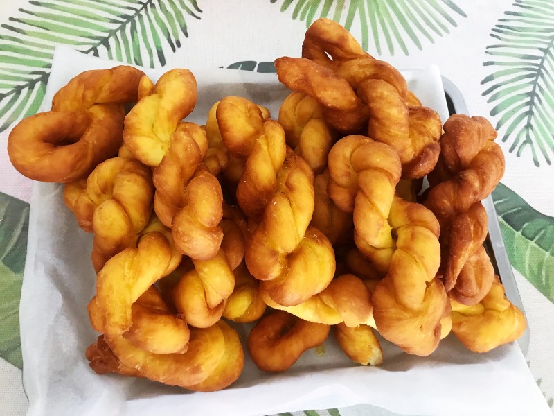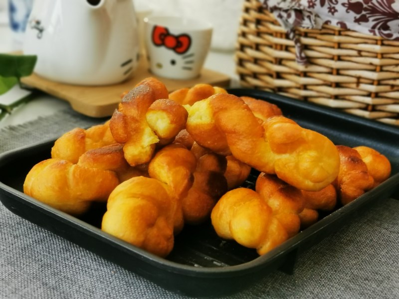 8:外酥里嫩的麻花做好了,喜欢吃椰蓉洒在上面也可以。