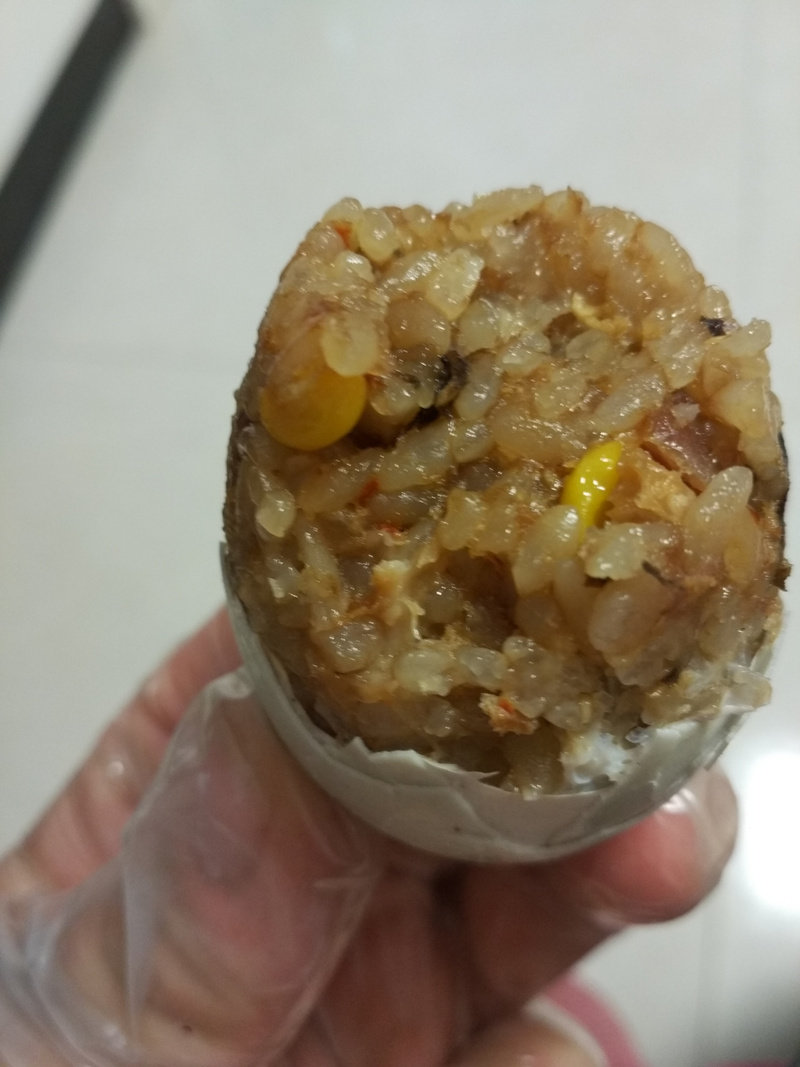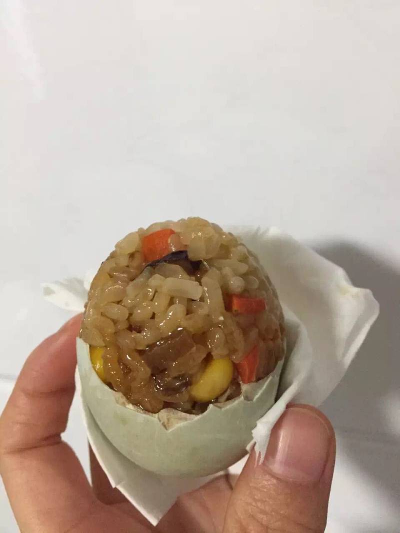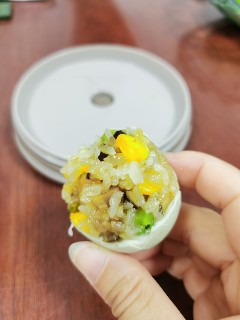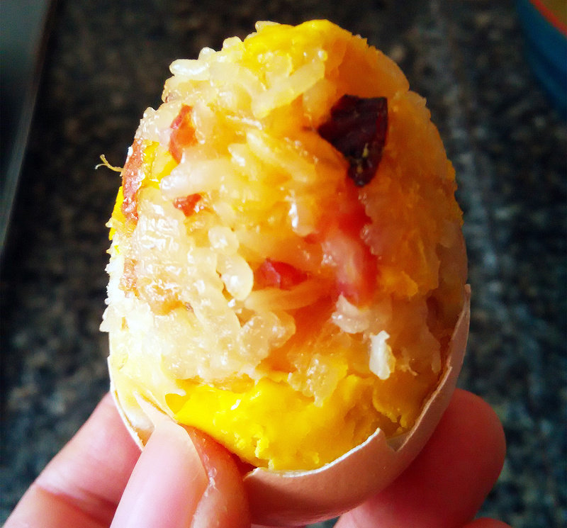 7:蒸好的糯米蛋,剥壳开吃。