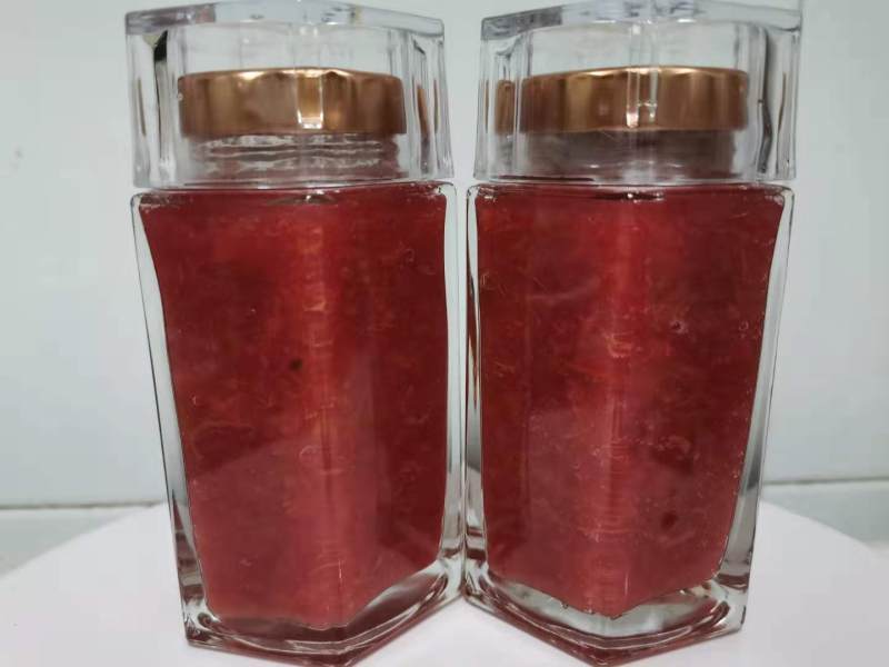 21:成品山楂果酱颜色桔红色,自制山楂果酱吃着放心。