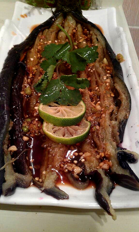4:待茄子冷却后吧调好的汁均匀的浇到茄子上即可