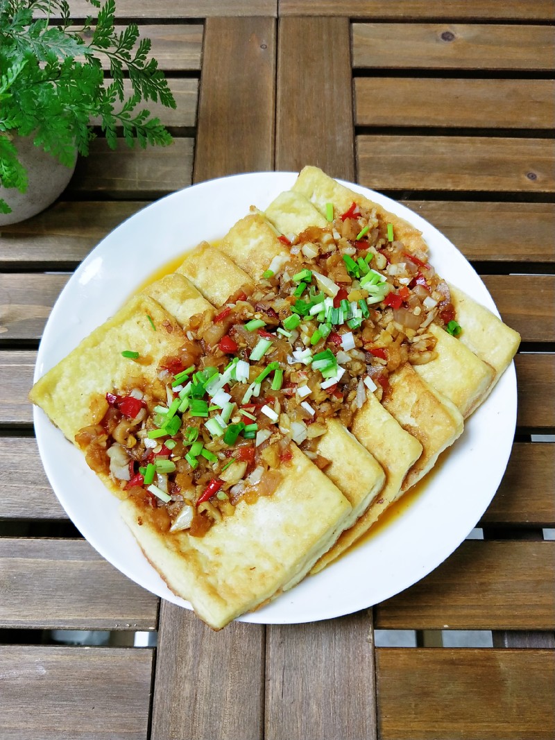 8:把配料汁浇入豆腐表面,水开入锅蒸5分钟。