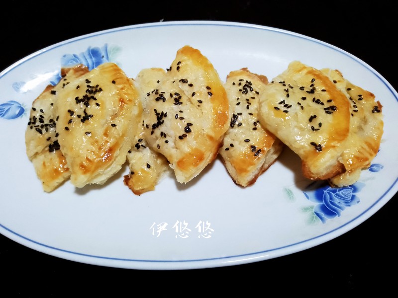 7:酥皮擀开,放入馅料,对折用叉子压实