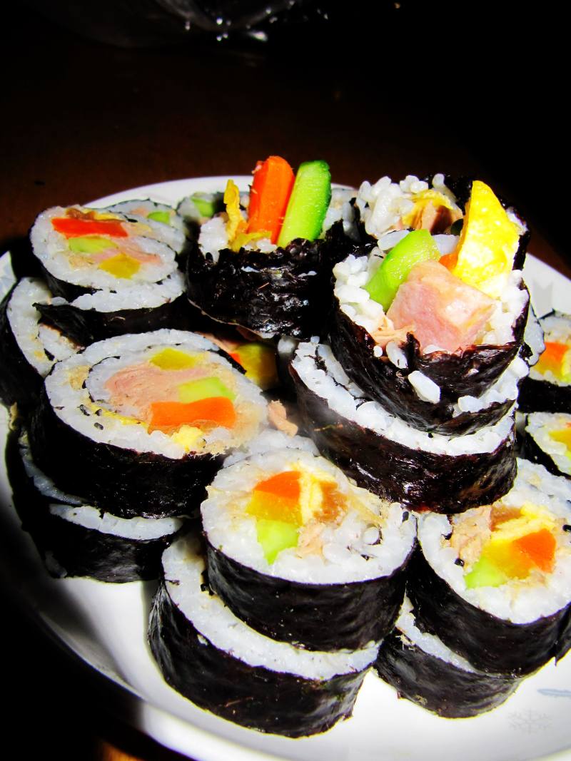 肉松适量;日本咸菜适量;沙拉酱适量;午餐肉适量;寿司醋适量;