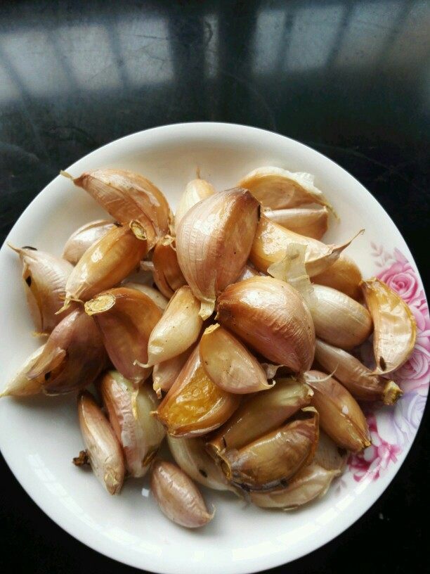 烧烤店里的大蒜就没剥皮,我也没剥。自家做时可以放凉水里洗一下。用烤箱太慢了,我查了一下别人的菜谱,等不及了,用锅子就快多了,而且熟了也是烧烤味。