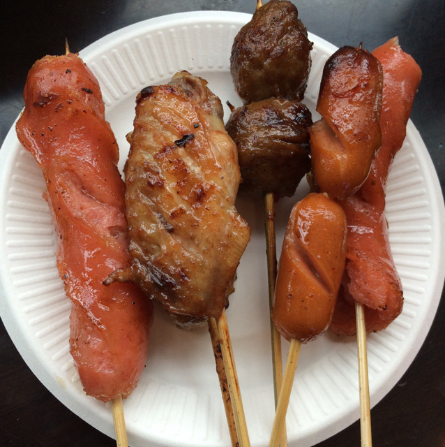 鸡翅200克;香肠200克;玉米200克;骨肉相连窜200克;肉丸200克;扇贝250克;鱿鱼200克;