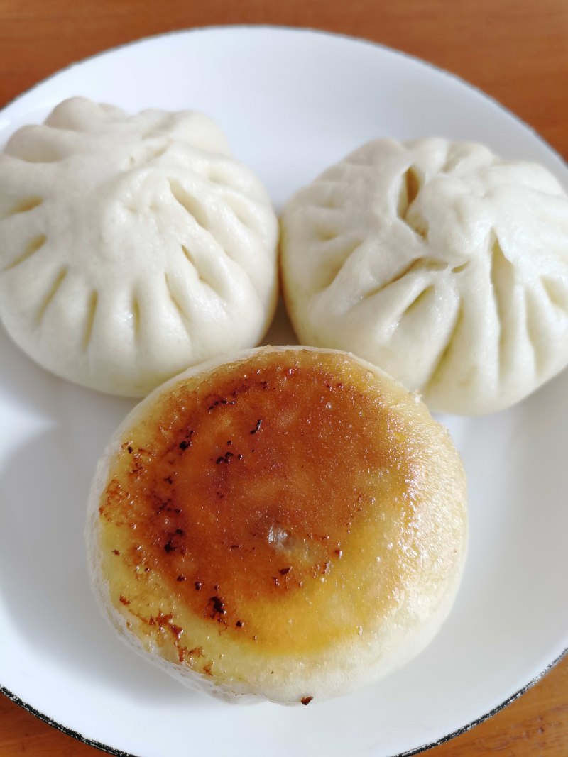 11:不粘锅放入1大匙油,烧热,放入包子,小火稍煎一下。