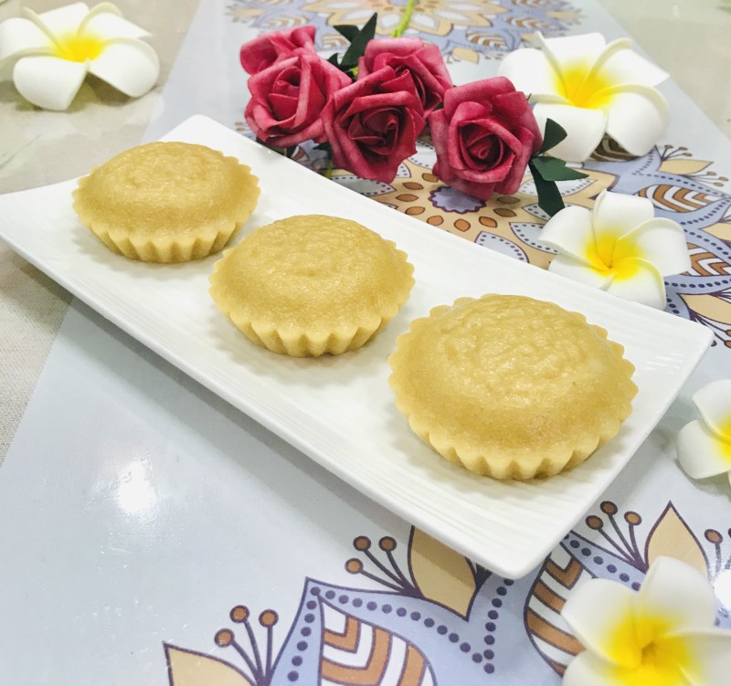 9:蒸好的发糕;不沾的模具倒扣非常方便,吃的时候切块即可。