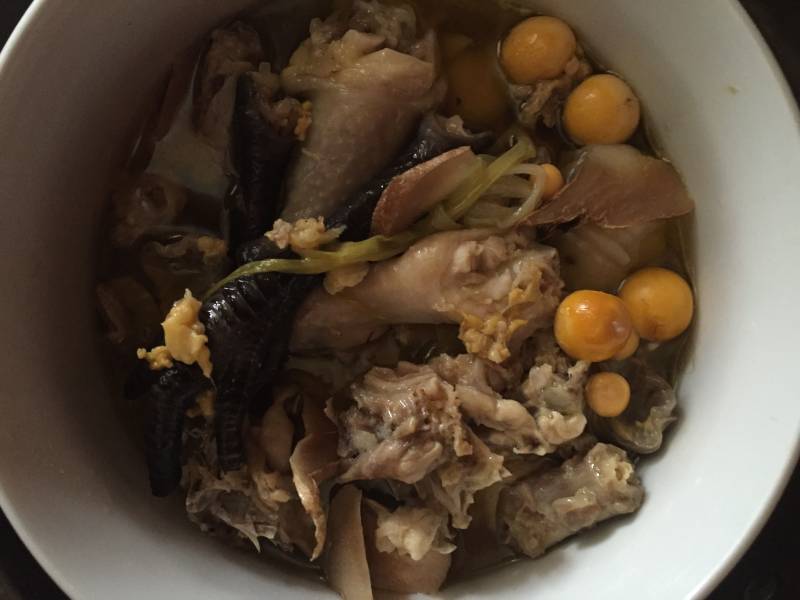 2:老母鸡放大碗中加盐、料酒、葱、姜,一碗凉白开