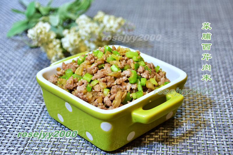 肉末约150克;菜脯约100克;榨菜约100克;西芹约250克;
