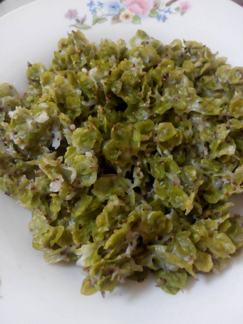 新鲜的榆钱更好吃不习惯老咸汤也可以拌些蒜泥油辣子之类的