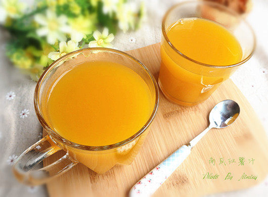 4:听到滴滴声,豆浆机程序结束,倒出南瓜红薯汁晾至温热,加适量蜂蜜调味即可。