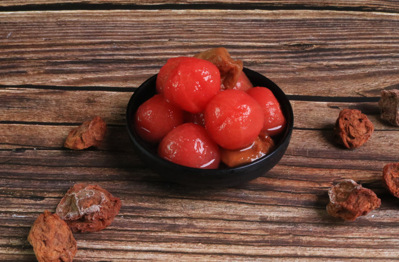 6:将剥好皮的小番茄放入话梅糖水里浸泡,放入冰箱里冷藏一夜后即可食用。
