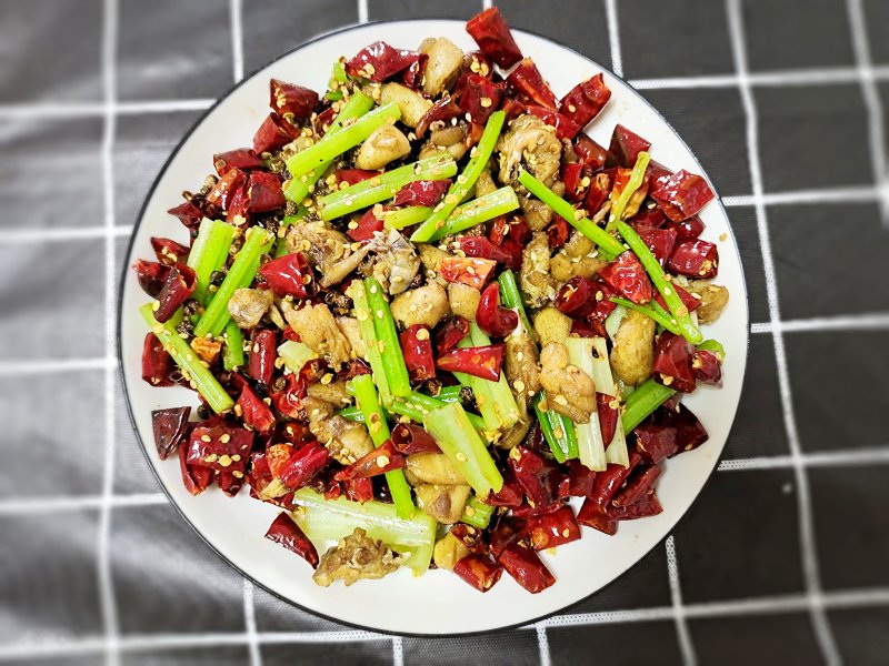 兔腿1个;香芹2根;干辣椒50g;