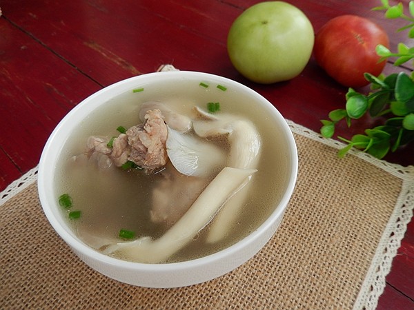 8:加入凤尾菇煮熟。加入葱花和盐调味即可。
