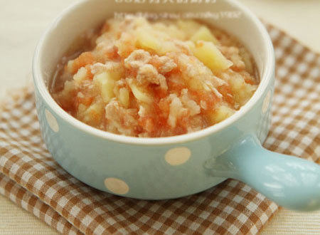 注意事项:也可将少量水煮沸下入肉末煮成汤,再加入番茄、土豆泥搅匀,小火煮至浓稠。