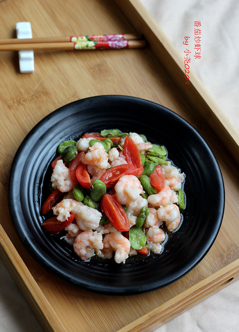 新鲜大虾250克;圣女果5个-6个;蚕豆(贵阳叫胡豆)60克;
