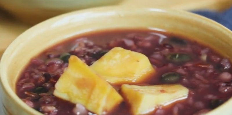 3:煮至差不多加入切好的红薯再煮至杂粮软烂。