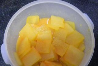 1.将去皮去籽后的橘子切成适当大小的块状,便于后续操作。
