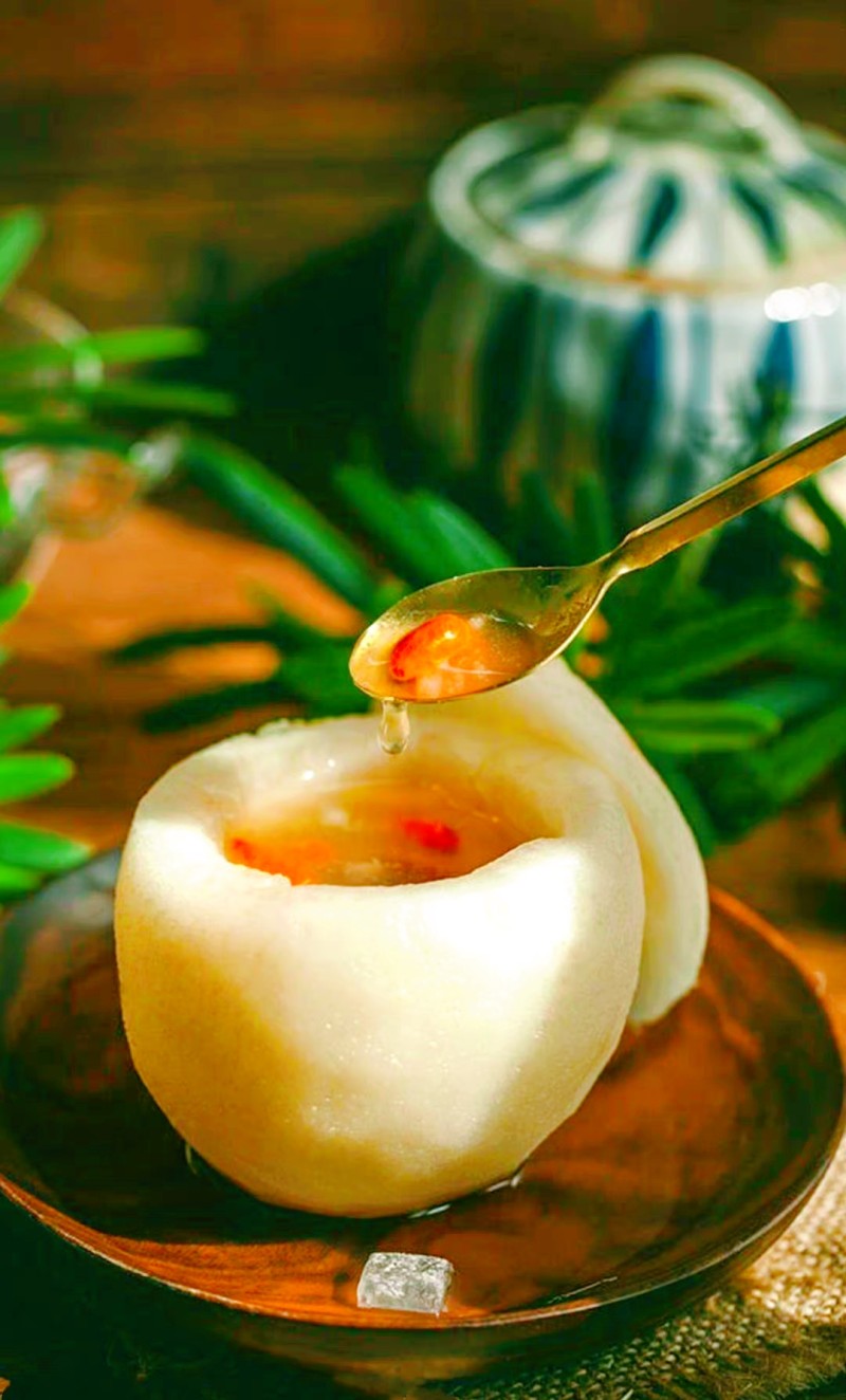 4:等再次煮开之后,改小火慢煮30分钟关火,一份冰糖雪梨就做好了