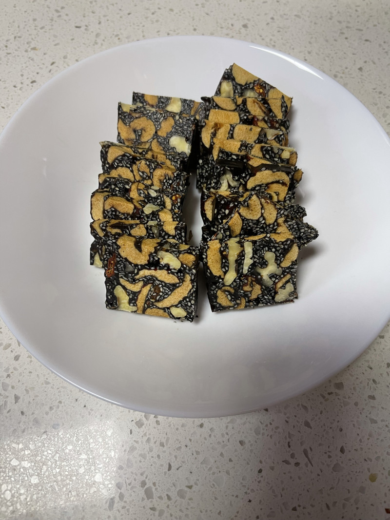 阿胶糕家常做法:取阿胶块敲碎,用黄酒浸泡至软化。辅料备好核桃仁、黑芝麻、红枣与枸杞。将泡好的阿胶隔水加热,搅拌至完全融化后加入冰糖熬至黏稠。依次倒入核桃、红枣、枸杞翻炒,最后加黑芝麻拌匀。倒入铺好油纸的模具中压实,冷却后切片即可。口感香甜软糯,滋补养颜。