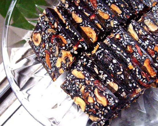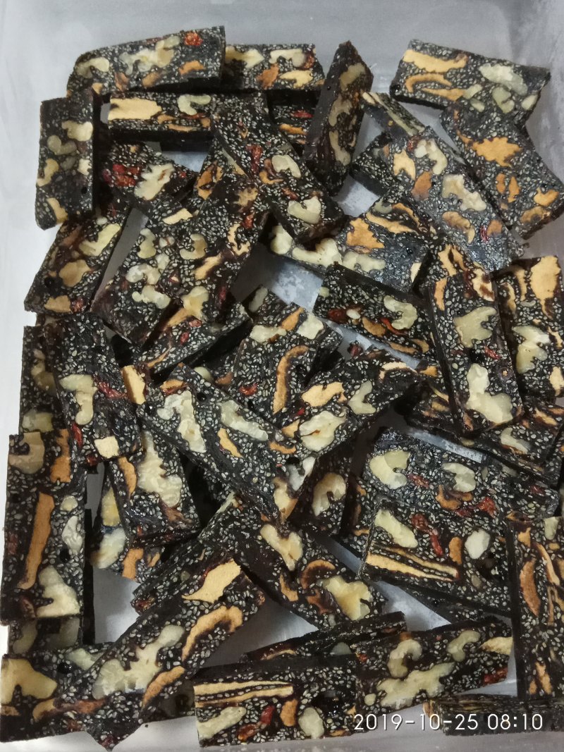 黑芝麻600g;枸杞250g;红枣500g;老冰糖200g;核桃500g;