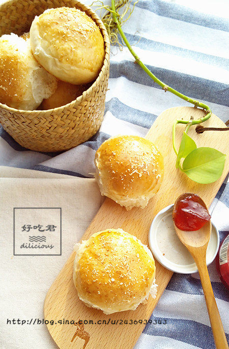 食盐2g;白砂糖10g;蜂蜜10g;黄油5g;酵母3g;鸡蛋液3g;椰蓉5g;