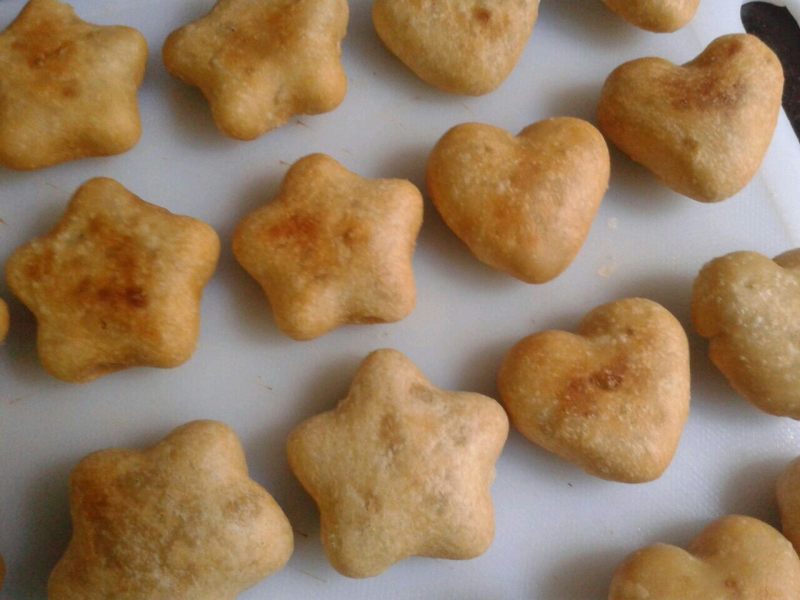 7:用最小火油炸,颜色金黄,浮起来即可