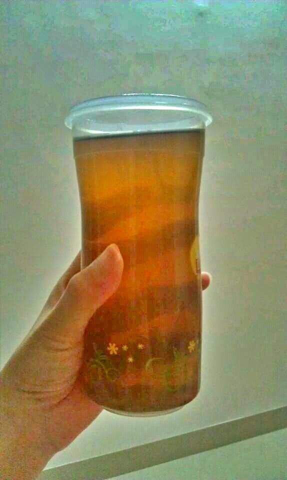 7:等乌梅汤冷却后将桂花水过滤后倒进去,这一锅一家人够喝一天了