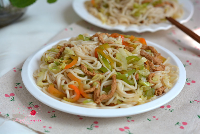 1:包菜切丝,青红椒、生姜切丝,里脊肉切丝。