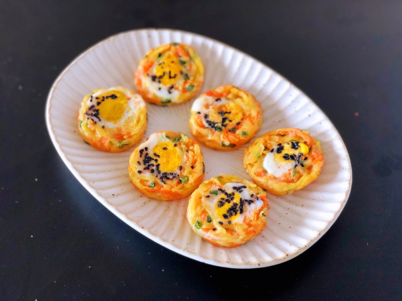 8:每个小洞打入一枚鹌鹑蛋,撒黑芝麻。