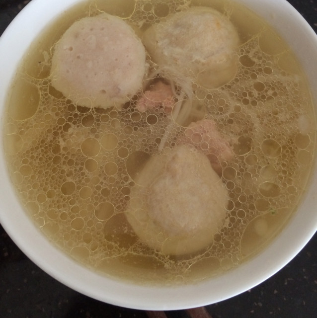 牛肉丸本身加了很多调味,这里切开了煮的时候会出味,所以汤里不用加太多的调料。