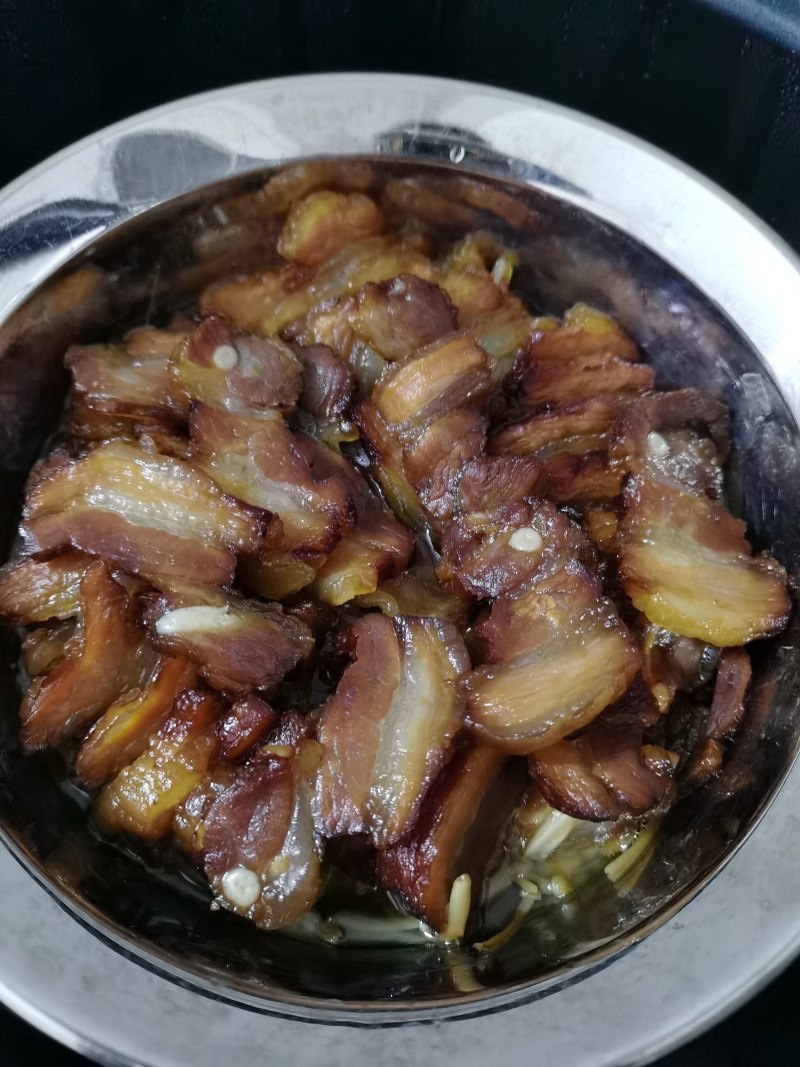 7:炒好的肉末浇在蒸好的金针菇碗里即成。