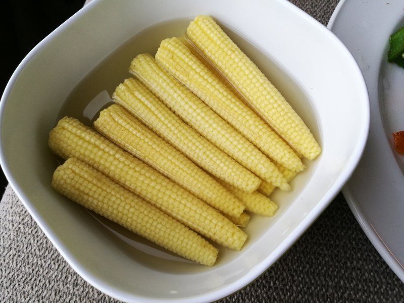 2:将玉米笋用清水冲洗一下,再用盐水浸泡约10分钟
