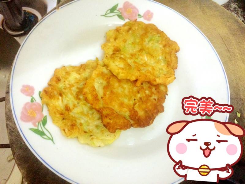 3:平底锅放少量油加热,把搅拌好的卷心菜浆放下去煎,两面焦黄即可。